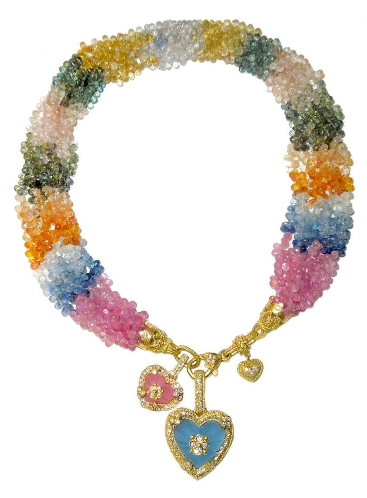 What do you think of this necklace? The beads are colored sapphires and the charms are colored quartz with diamonds in gold. (Via 1stdibs.)