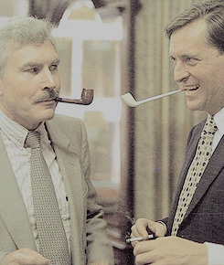 When he first got the script for the Granada series The Adventures of Sherlock Holmes, he found it so far adapted that he went to the script editor and said, “But you’ve asked me to do Sir Arthur Conan Doyle’s Sherlock Holmes. These aren’t Sherlock Holmes—Doyle’s stories.“ And the editor told him, “Jeremy, you’re here to act. Just get on with it.” So he tipped the table over and his fish dinner landed in the editor’s lap. And that was the beginning of their tousle.