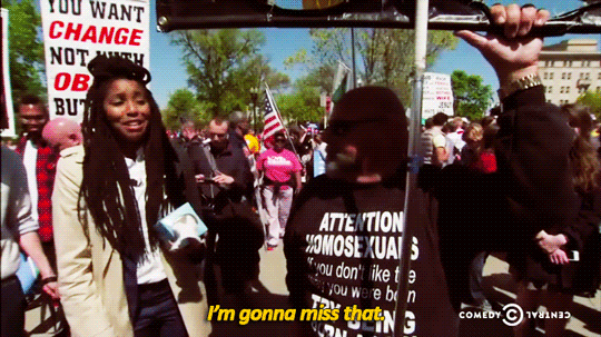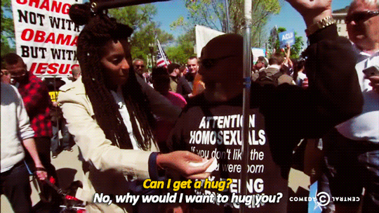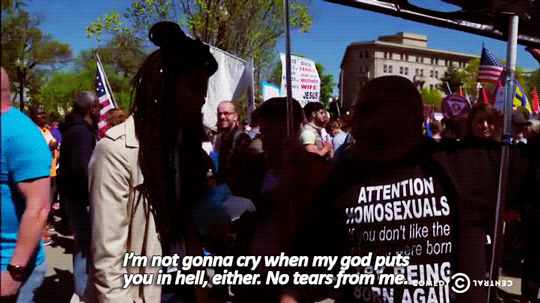 September 10, 2016 Overly Devoted Archivist Uncategorized hehehe, jessica williams 0 Comments sandandglass: TDS, May 4, 2015 With the tide of history turning against them, Jessica Williams commemorates the anti-gay protesters who will soon become irrelevant.