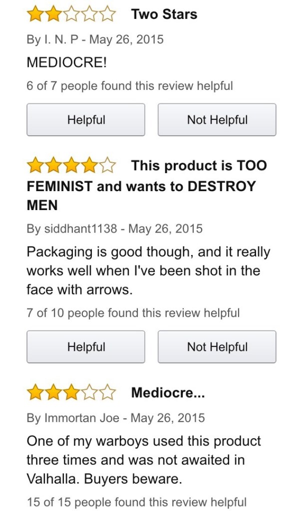 Very much agreed! I normally agree with Anita’s work, and I like her videos about video games. But Mad Max was a big win for me. It had some hiccups here and there (I felt like there may have been some gender essentialist even cis-normative views of gender in the film) but over all it was very satisfying for an action film.
