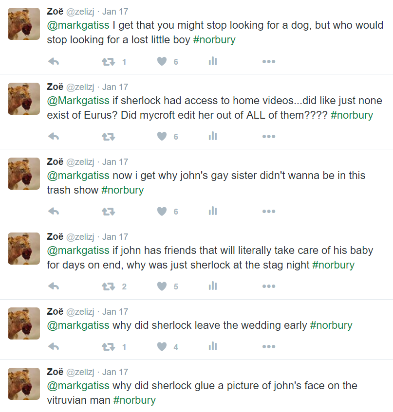 I have seen dozens of example of Johnlock conspiracy theorists threatening and harassing other fans, cast and crew. I have seen people making open and public plans to do worse and bring their online harassment into physical reality, egged on by a toxic community. That is not okay.