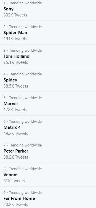 There was a time yesterday when almost every single hashtag trending on Twitter was Spider-Man related in some way.