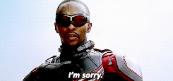 So to me, this is Sam’s way of showing Bucky that he’s not afraid of him, that he trusts him to react like a human being, that he’s not worried Bucky’s gonna turn into a murder-bot if Sam pisses him off. He’s not treating him like a ticking bomb, and at the same time, he’s acknowledging that their history includes some messy stuff. But by reacting to that mess with such little jabs, he’s also downplaying how big the mess was – he’s reducing what happened between them in Winter Soldier to the level of dumb shit that happens between siblings. He’s making it something deserving of petty little paybacks, instead of something Bucky needs to carry a heavy burden of guilt over.