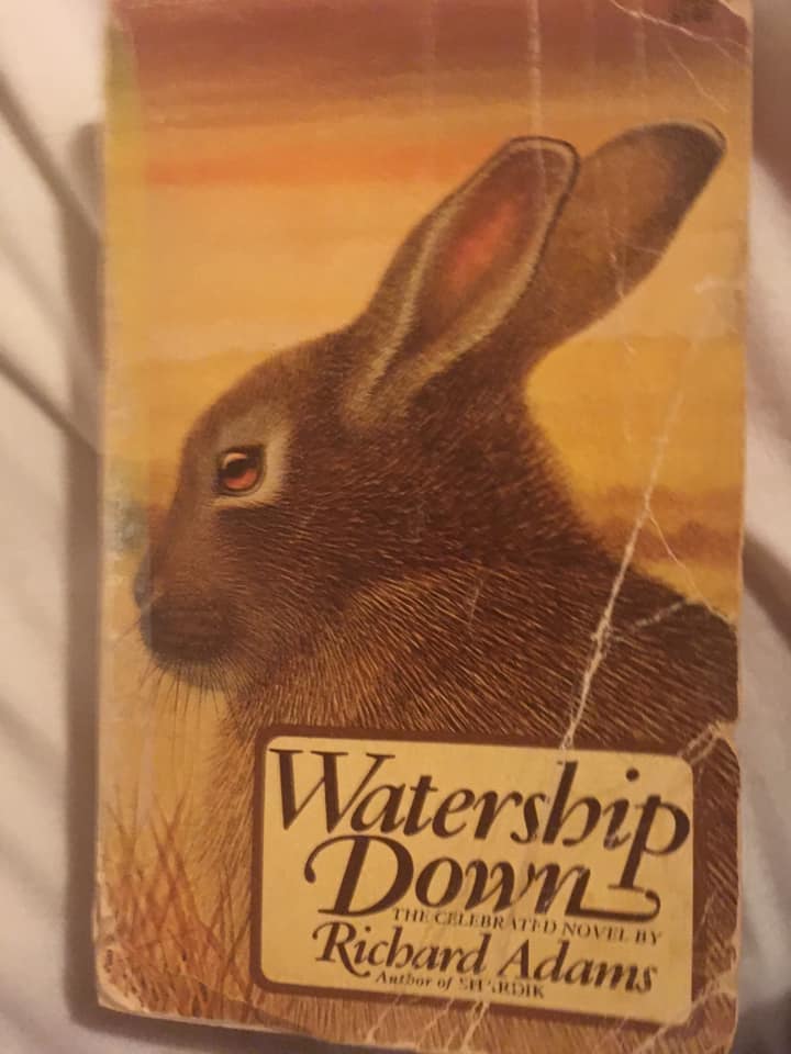 Meet one of my most treasured possessions. This is my mother’s childhood copy of Watership Down, now held together by sellotape. Both our names are in it, hers in 1976 and mine in 2001. (Awww, look at the Noughties smiley face emoji and the heart in there.) I think Mum got it from America but I’d have to ask her.