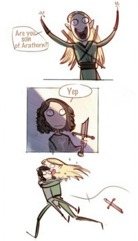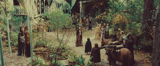 Many others of Elrond’s household stood in the shadows and watched them go, bidding them farewell with soft voices. There was no laughter, and no song or music. At last they turned away and faded silently into the dusk.