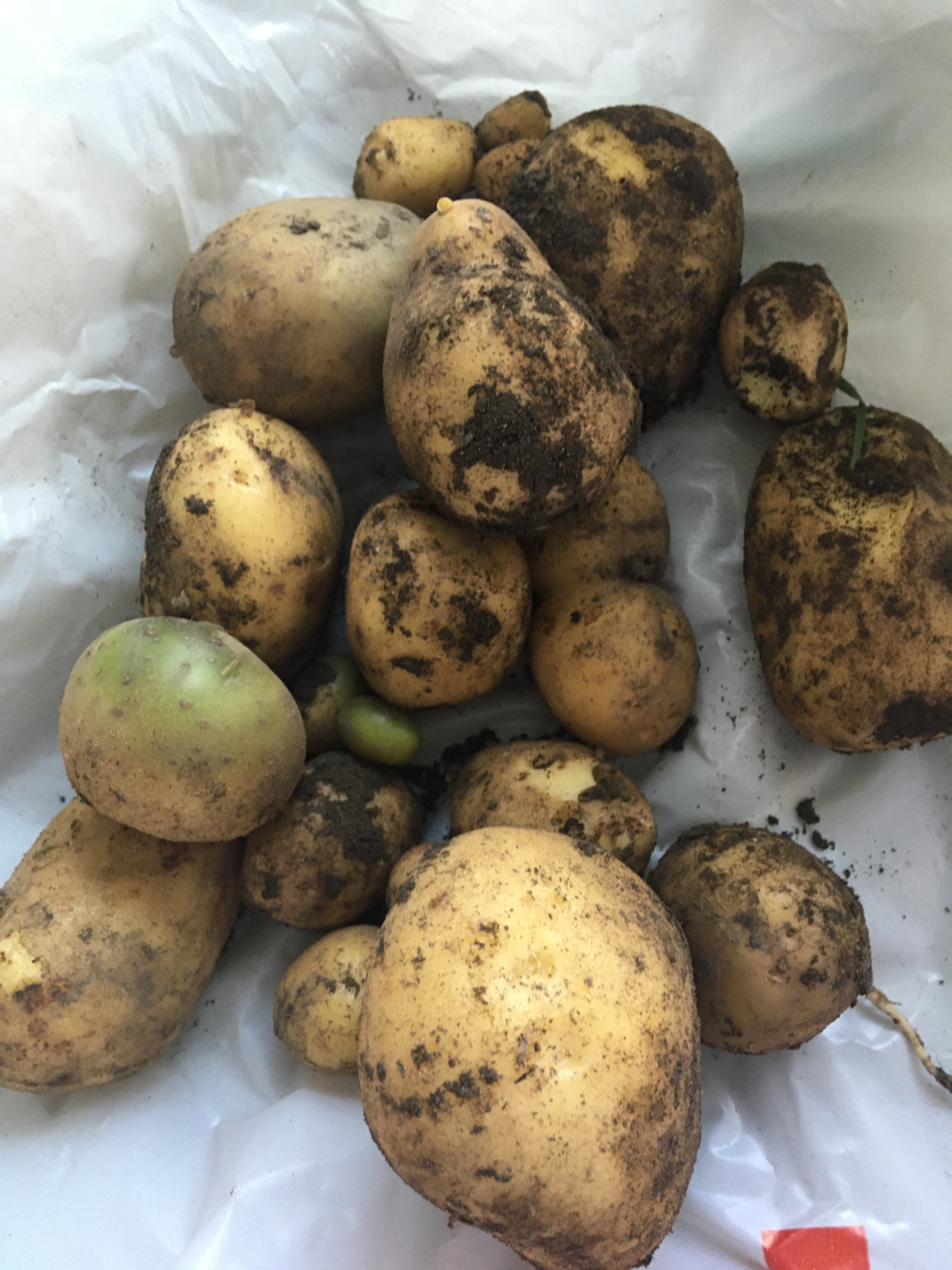 Yep, MORE potatoes! These are the ones from the flowerbed! And there’s much more than came from the pot! Good eh?
