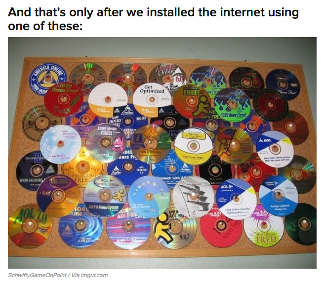 The annoying, indescribable sound of AOL using the modem to connect to the internet… Which lasted between 30 seconds and 10 minutes depending on how far away you lived from the nearest telephone poles.