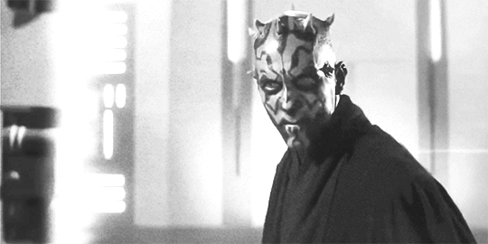 She doesn’t fall, no. She doesn’t turn evil. But watch that scene again. She closes her eyes. She reaches for the Force. And when she opens her eyes again, she snarls. She beats Kylo Ren back with brute strength and vicious, choppy saber-blows, like Luke used in Return of the Jedi when the Dark Side tempted him. When Ren’s forced to his knees, she circles him with the Dark Side stalk. Daisy Ridley delivers a perfect physical quote of Ray Park’s Darth Maul. ”