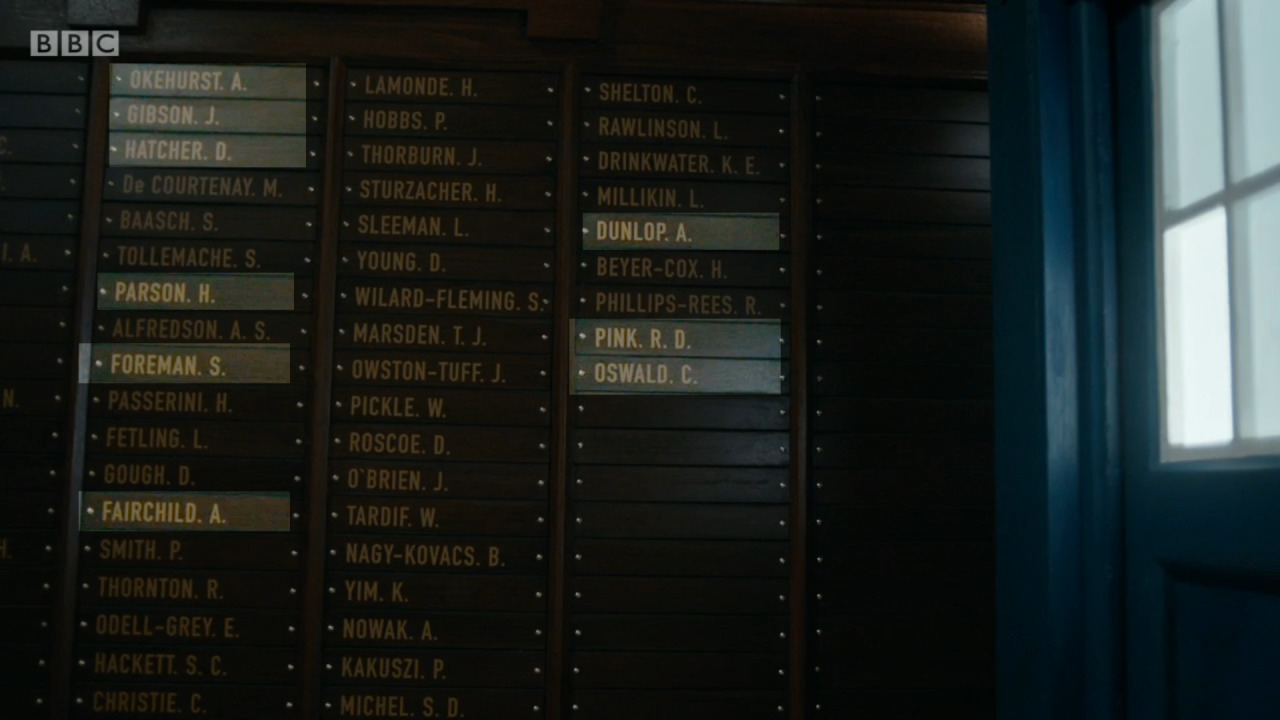 - H. Parson is Harvey Parson, the headmaster in 1963. He was taken control of by the Daleks and later exterminated in Remembrance of the Daleks.
