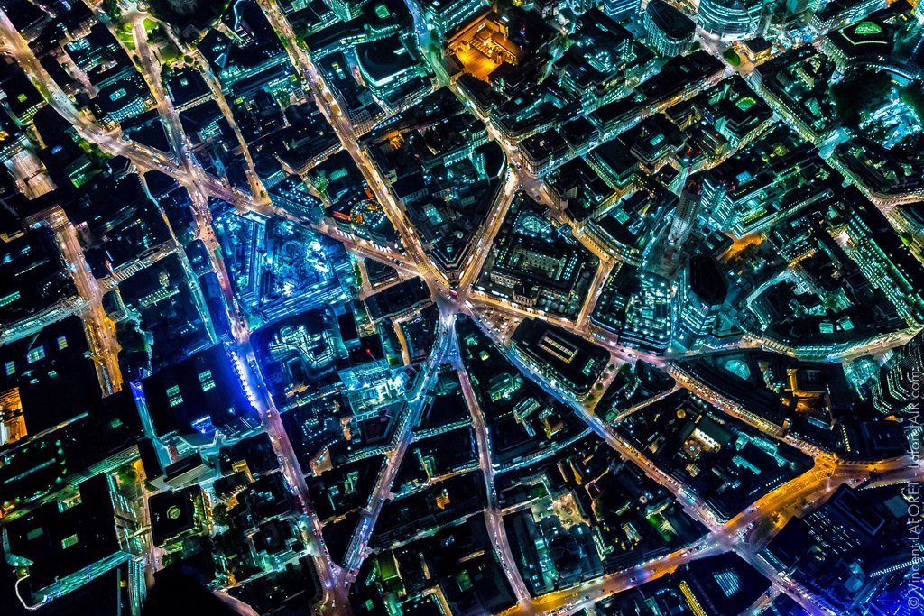 Shot from a light aircraft, flying at roughly 5,000 feet, Butterworth said: “The height was crucial in order to flatten perspective by using long focal lengths. Time of day and cloud cover were also critical, the abstract effect being heightened by complete lack of signifying shadow.” [Creative Boom]