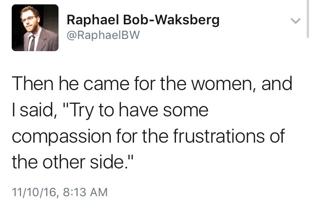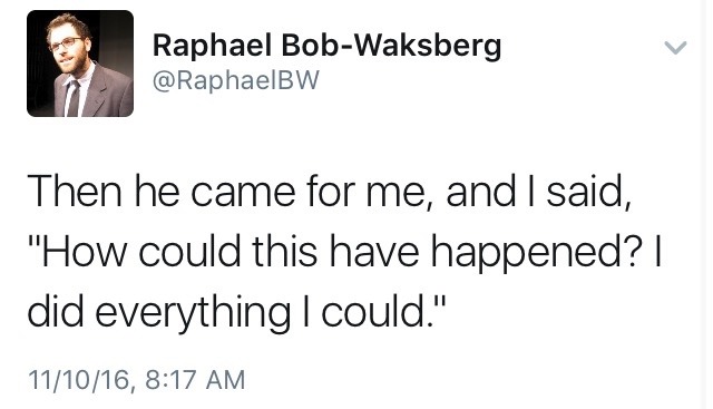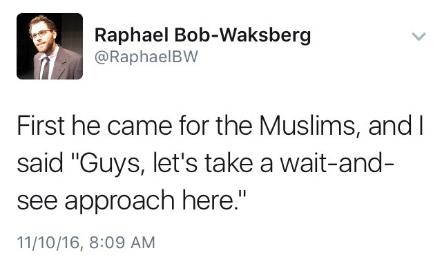 With Trump’s election and the threat of fascism, Twitter user Raphael Bob-Waksberg reminds us of Martin Niemöller’s words after WWIII: