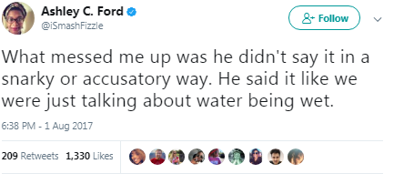 I’m serious: take the fucking guns away. I can offer absolutely nothing about how to best solve the racism problem, I don’t know anywhere near enough (beyond ‘for the love of god, fire any police officer who makes racist comments, fire them straight away, what is wrong with you?!’) but in the meantime remove firearms from US cops. They’ve proved constantly, over and over again, that they don’t deserve them.