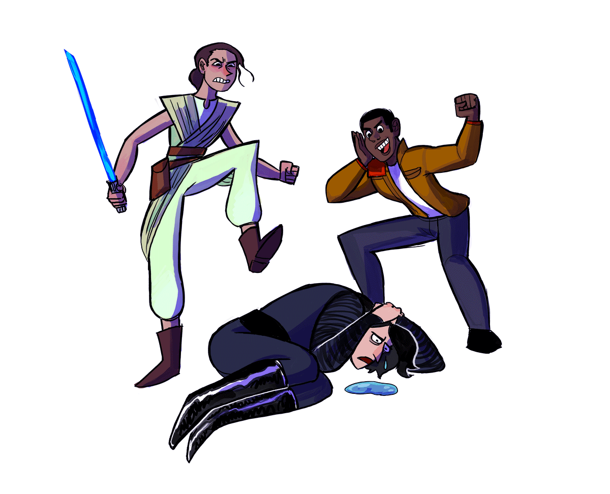 – Several shots of Rey igniting and spinning Luke’s lightsaber.