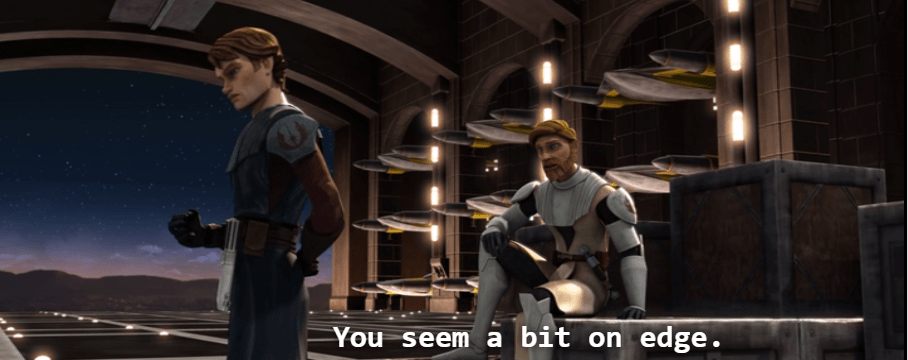 I mean, LOOK at it. Obi-Wan doesn’t just take a step back; he takes one and then keeps going. He draws his saber.
