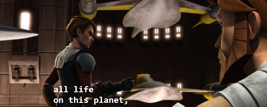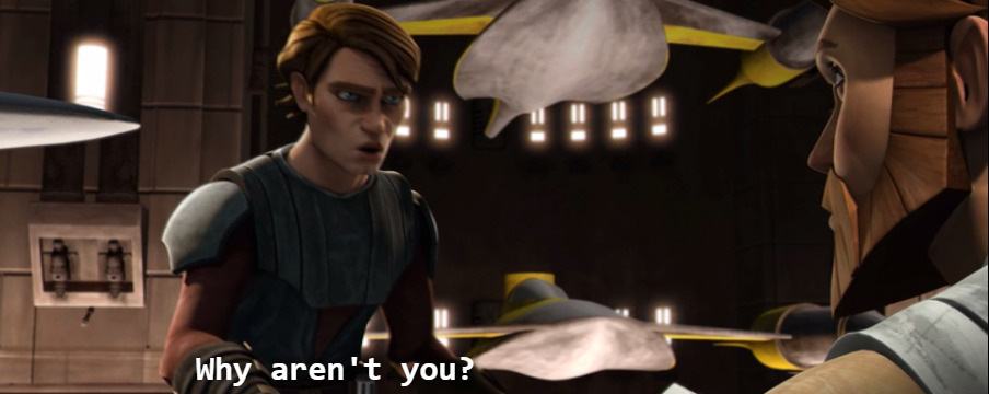 But then we get a line like this, and whether Obi-Wan is talking to actual!Qui-Gon or to a funky Force projection drawn from Obi-Wan’s own mind, the meaning stays the same: it is with me always. Obi-Wan carries Qui-Gon with him everywhere he goes, in everything he does. This is the line that belies the idea that TPM didn’t affect him much, the one that reminds us what Obi-Wan has been holding, quietly and without complaint, for years. Obi-Wan worked damn hard to come to terms with losing his teacher – parent, in many ways, let’s be real – he worked hard to find the measure of peace he’s achieved – and even though the healing he did is genuine, the loss is never forgotten, either, even if it goes unspoken now more often than not. Everywhere I am, there you are also. Silently, maybe; invisibly, maybe; but present nonetheless.