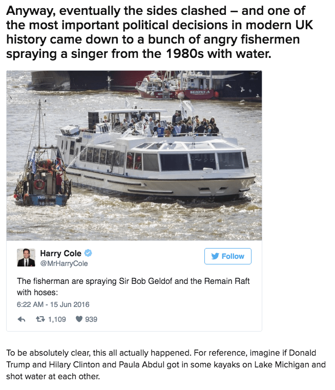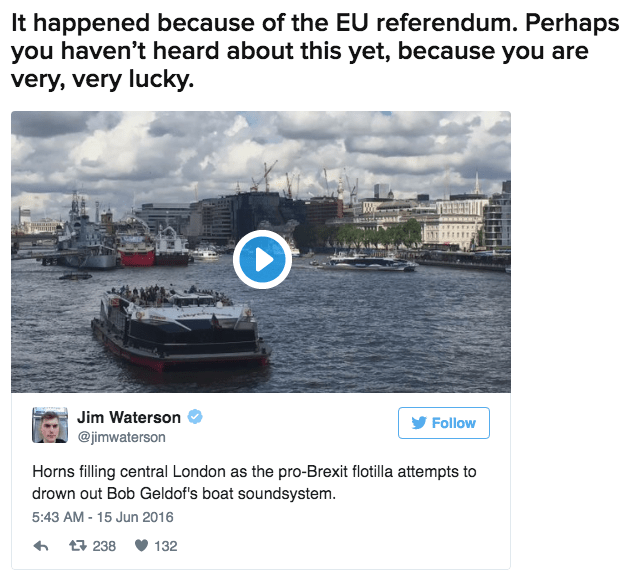 The Leave campaign are scapegoating refugees as to why we need to leave the EU which would be hilarious if I didn’t live in the middle of nowhere surrounded by white middle-class racist UKIP voters that are goddamn licking it up. (Cornwall. Don’t even.) They are using the recent “migrant crisis” to emphasise that as soon as someone becomes an EU member they can live anywhere in the EU, as in, all the EU countries that are nicer than we are and actually let people fleeing from their wartorn country stay, can therefore decide to move to the UK. But, yo, leaving the EU won’t stop immigration. And even more hilariously, our borders are actually more likely to be weaker if we leave the EU than stronger.