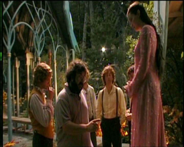 As a crazy note, I can’t even find a spot on the internet that will tell me what this scene was supposed to be about. But. Arwen. With The Hobbits. Her smiling. That adorable outfit. WANT.